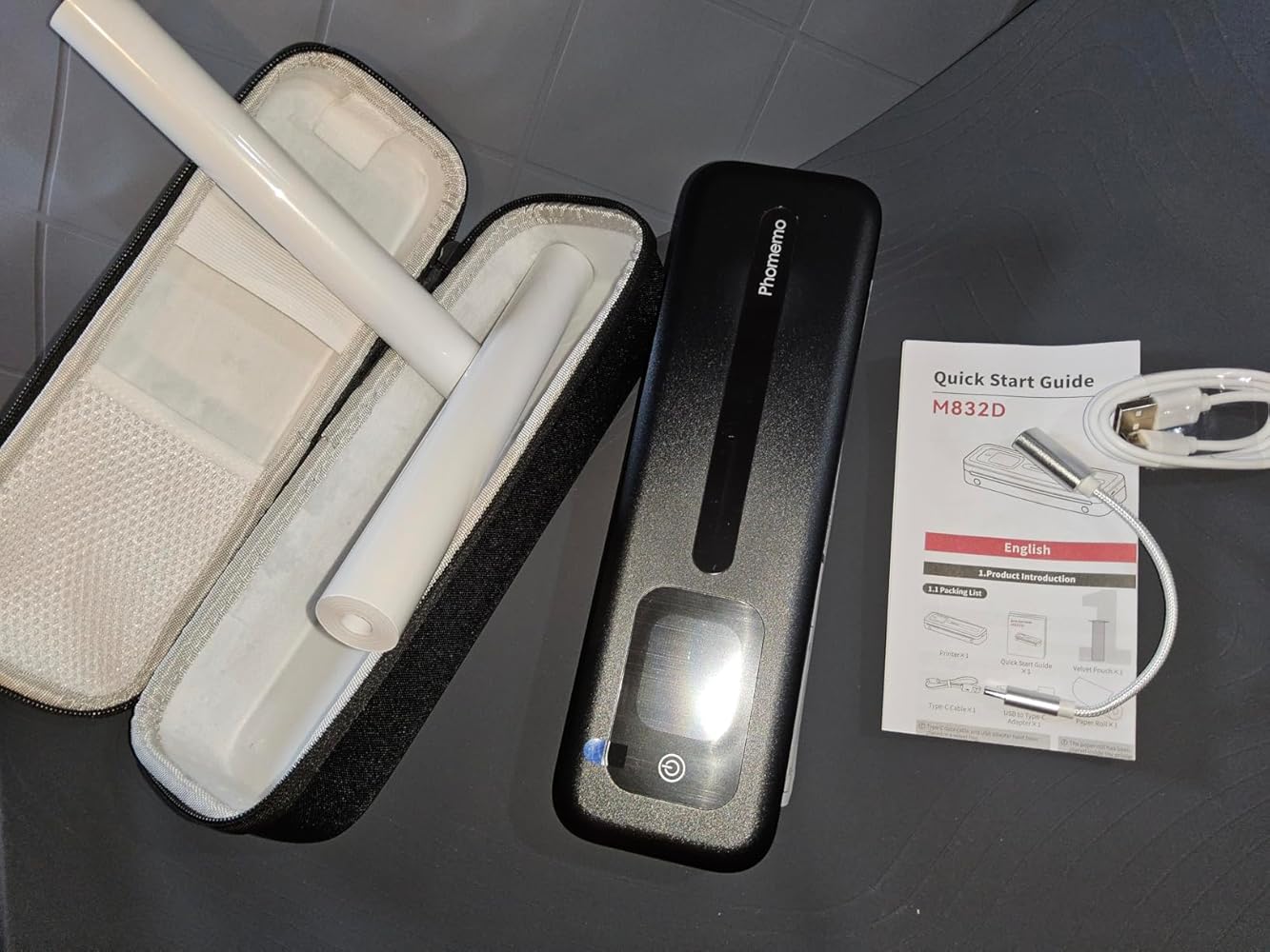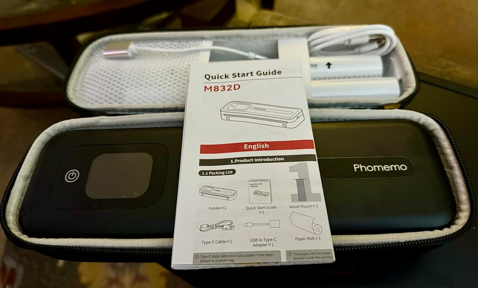 This is a portable thermal printer, with a 2 inch LCD touchscreen. Setup is pretty straightforward (except for a language issue, I'll explain in next paragraph), remove the protective sheet, install a roll of paper (3 rolls included), and power it on. The mobile app doesn't require any special permissions or your email, just bluetooth.I had one small issue, the printer screen defaults to chinese, and there's no instructions for changing that to english. It's a 4 step process (see photo). The steps are: 1. press the bottom right icon, 2. press the gear (settings) icon, 3. press the top option which is "language", and 4. select your desired language.I tested this printer with some documents for work, including 2 photographs. When printing pictures, for better results, in the app, at the ready to print page, press "Layout style" under print effects, and select 'original', not 'text enhancement'. This gives much more detail. For standard 8.5" x 11" paper, select letter, not A4, (A4 is 8.27 x 11.69"). This printer has a slot for loading a roll of paper, which is very convenient, since you don't have to load each sheet by hand. They include 3 rolls of paper, with each roll containing about 26 sheets. There's a serrated metal cutting edge on the printer, which helps when using these un-cut rolls of paper. It's not easy to get a perfectly straight cut, I was only able to get 1/5 professional looking cuts, so now I print one page at a time, score it using the serrated edge, open the case, and use scissors. The printer will also accept folded and single-sheet thermal paper. You can even print standard 4 inch shipping labels. It can't print 12 x 40mm labels, unfortunately.In conclusion, this is a fantastic printer. The touchscreen tells you real time status for: battery level, paper, bluetooth connection, calibration, and in easy to understand words, not just one or two flashing lights like other printers. I've been using Phomemo thermal printers since 2023. Starting with the D30 label maker, and this is my 4th. The app, and printers all work very well. Is having a built-in screen worth paying extra? Yes, but you can do most of it from the app.